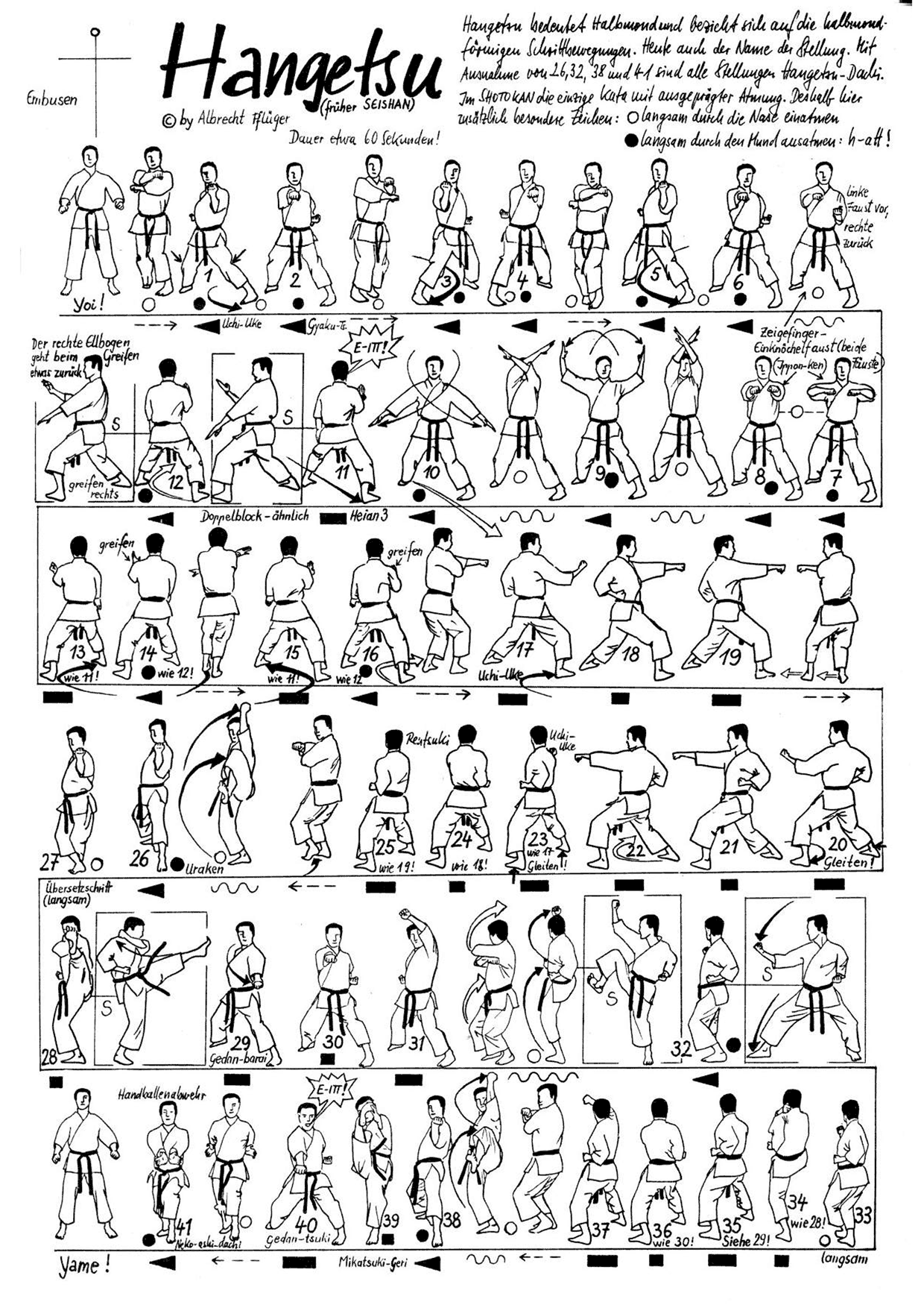 In der Prüfungsordnung Shotokan muss eine Kata aus der Jion, Kanku Dai, Empi oder Hangetsu gewählt werden.